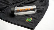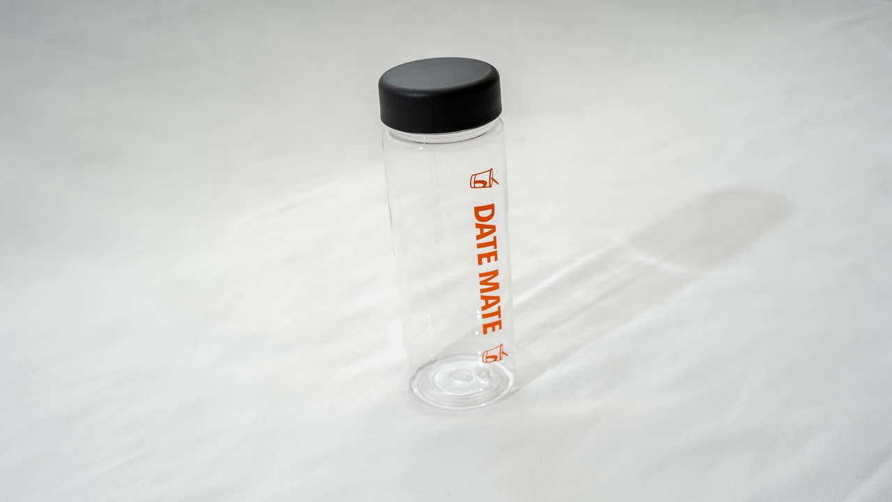 爽やかなデザインながらブラックのキャップでクールな印象のボトルになります。