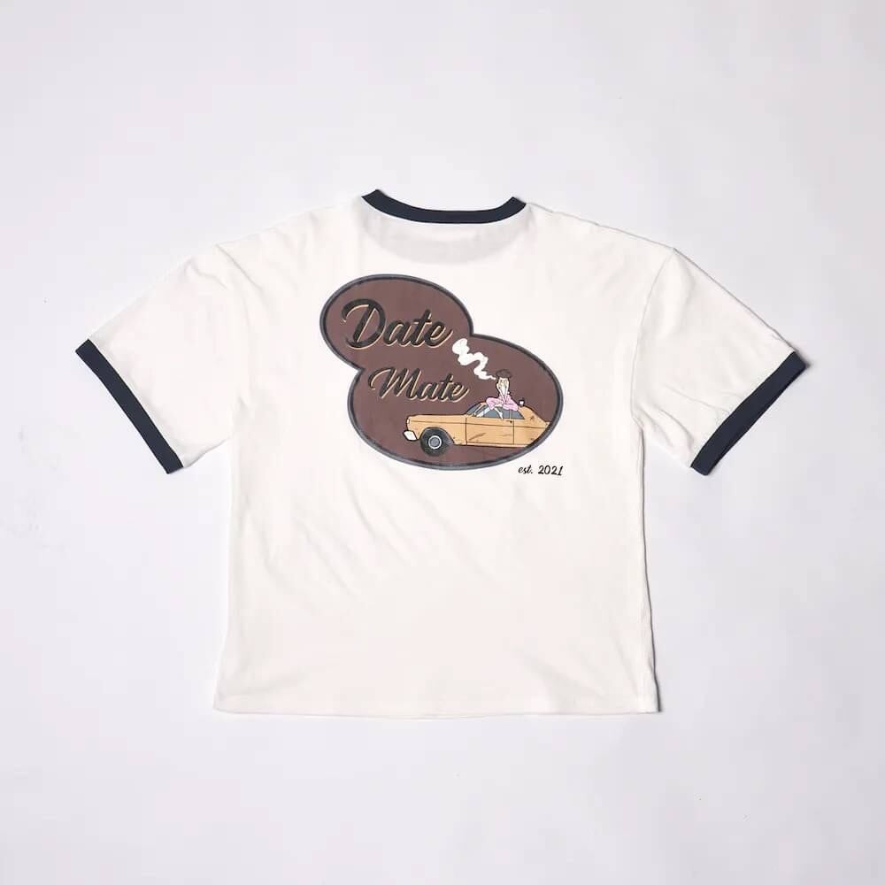 ビッグシルエットのリンガーTシャツのバックプリントには、アクセントのあるデザインがカラー